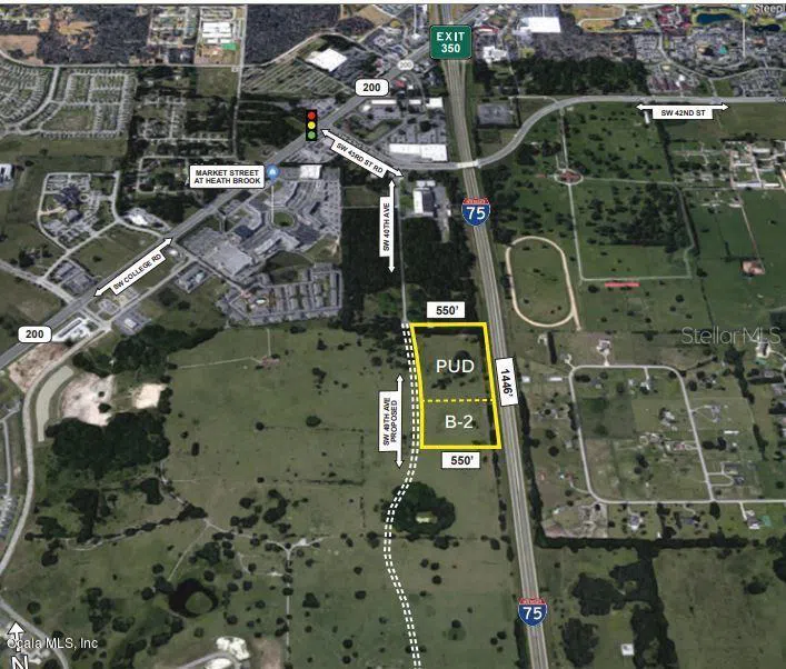 Over 1400 feet of Prime Interstate frontage on I-75 in close proximity of quickly expanding development along SR200. Great potential for Commercial use, Hotel, RV Sales, Car Sales, etc.. The 18 Acres encompasses a portion of parcel Parcel #23875-000-00 which is zoned B2 and approx. 6 acres. and parcel #23877-000-00 which is zoned PUD and approximately 12 acres. This is your Opportunity to get in now on Ocala's Commercial Boom. Property will also be bordered by the new four-Lane SW 49th Avenue, the construction of which is scheduled to begin in 2021.