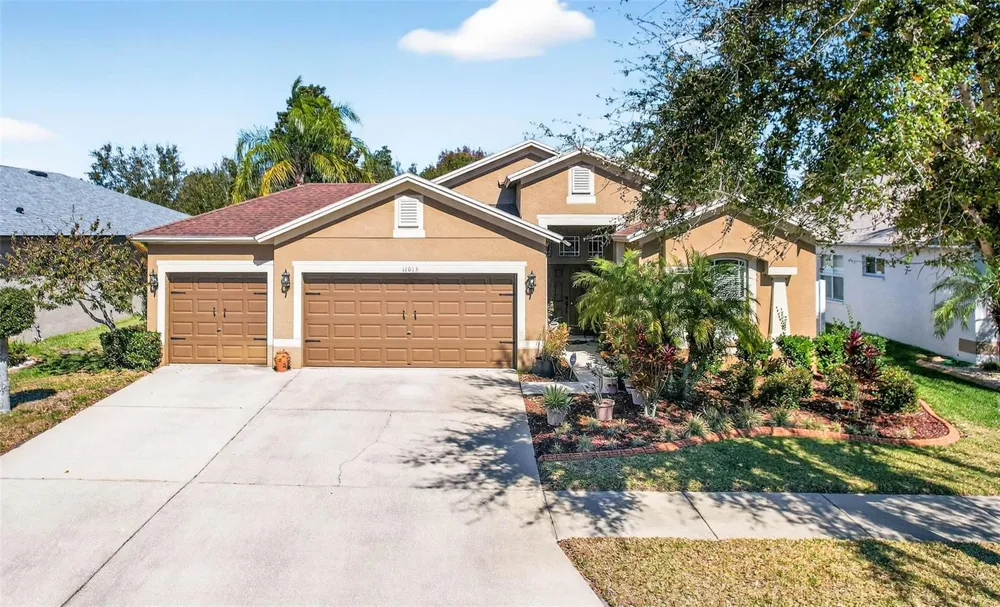 Welcome to this wonderful Suarez home located in the highly desirable Southfork community! This immaculate and beautifully maintained 4-bedroom, 2-bath residence with a 3-car garage is situated on a private conservation lot, offering both comfort and tranquility. As you enter through the double front doors, you’re greeted by a tiled foyer that immediately showcases the warmth and charm of the home. The spacious floor plan features a large family room with sliding glass doors that open to the covered lanai, providing stunning conservation views—perfect for relaxing or entertaining. The dreamy kitchen offers a breakfast bar, speckled Corian countertops, 42” wood cabinetry, and a separate breakfast nook overlooking the backyard. The home also includes a formal dining room and a separate formal living room highlighted by elegant columns, a half wall, abundant natural light, and serene views. The split floor plan provides privacy, with three additional bedrooms and a full bath located away from the primary suite. The spacious primary bedroom features an en-suite bath with a garden tub, separate shower, and dual sinks. A separate laundry room adds everyday convenience. The South Fork community offers great amenities including a community pool, parks, playgrounds, basketball courts, tennis courts, and walking trails.